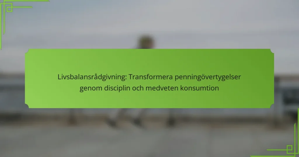 Livsbalansrådgivning förbättrar din ekonomiska resa genom att förändra penningövertygelser genom disciplin och medveten konsumtion. Nyckelmetoder inkluderar att sätta tydliga ekonomiska mål, anta en disciplinerad budget och praktisera medvetna utgiftsvanor. Dessa metoder främjar en hälsosammare relation till pengar, vilket gör att individer kan prioritera behov framför önskemål. Dessutom kan regelbunden reflektion över utgiftsmönster identifiera områden för förbättring, vilket förstärker positiva ekonomiska beteenden över tid. Att betona ansvar genom stödföreningar eller rådgivningssessioner kan ytterligare stärka engagemanget för dessa metoder.